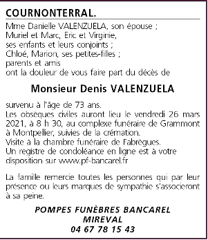 Décédé à Montpellier (34000, France) le mardi 23 mars 2021 à l'âge de 73 ans